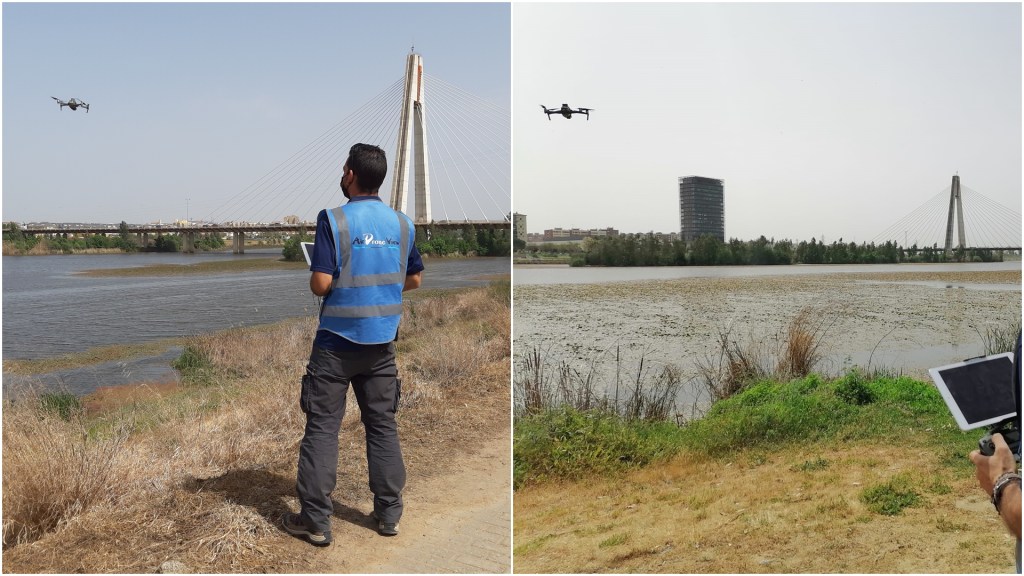 Gracias a nuestros permisos de vuelo en CTR y entorno urbano, pudimos realizar unas tomas espectaculares en la zona de la alcazaba de Badajoz y en algunas zonas del río Guadiana a su paso por la ciudad