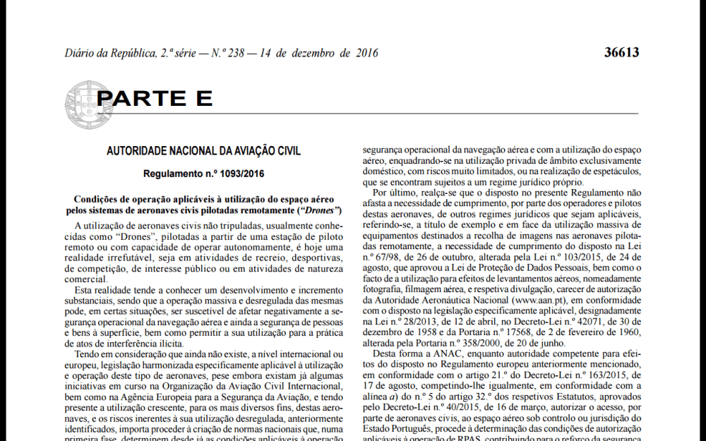Al fin Portugal ha sacado uno reglamento que permite el uso de drones con distintos fines.