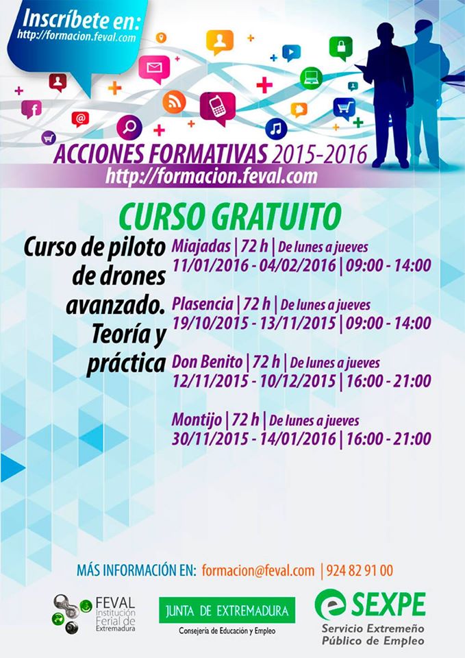 Antes aún de haber terminado el curso oficial en Plasencia (Cáceres) arranca el curso oficial de pilotos de RPAS en Don Benito (Badajoz). Afortunamente Air Drone View somos ya un gran equipo y tenemos la posibilidad de llegar a todas partes.