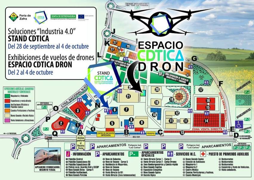 Ayer arrancamos motores en la Zona de Demostraciones del CDTICA de la Junta de Extremadura. Durante los días 2, 3 y 4 de octubre, Air Drone View alzará el vuelo para todos los asistentes a la Feria Internacional Ganadera de Zafra 2017.