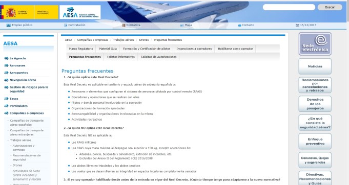 Hoy 15 de diciembre de 2017 está siendo un día con muchas dudas en el sector de los drones. Paciencia, que todo irá saliendo, y hasta que la nueva legislación no esté publicada en el BOE con las condiciones y plazos de actuación, lo demás serán especulaciones.